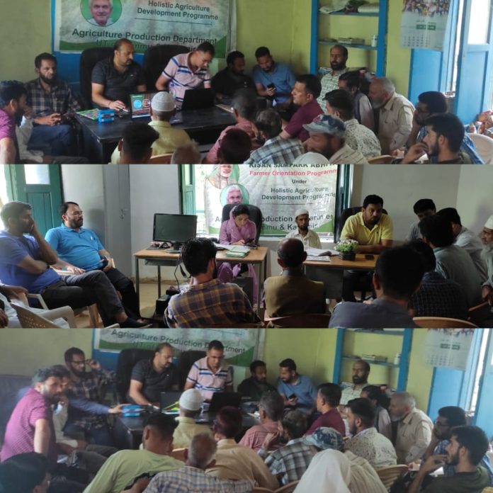 RAMBAN: The first day of eleventh round of ongoing Kisan Sampark Abhiyan (Farmers Orientation Programme) under the aegis of Azadi Ka Amrit Mahotsav with the theme Aatmanirbhar Bharat was held today in 03 blocks of district Ramban.