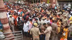 Following the incident, there was chaos in the temple and surrounding areas. District and police officials reached the spot and are working to manage the situation. An investigation is underway to determine the exact cause of the incident.