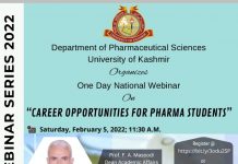 Srinagar: Kashmir University's Department of Pharmaceutical Sciences on Saturday organised a one-day webinar on 'Career Opportunities for Pharma Students'.
