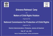 Grievance Redressal Camp on Matters of Child Rights Violation on July 04 at Pulwama