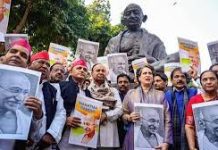 NEW DELHI: With photographs of Mahatma Gandhi in hand, several opposition MPs on Thursday took out a protest march inside the Parliament...