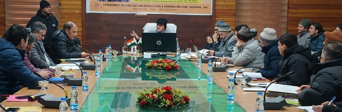 He stated this while chairing a meeting with Director Agriculture Kashmir, Joint Directors, Provincial Heads, Scheme Heads, Sectoral Officers and Chief Agriculture Officers from various districts at the Agriculture Complex, Lalmandi, Srinagar.