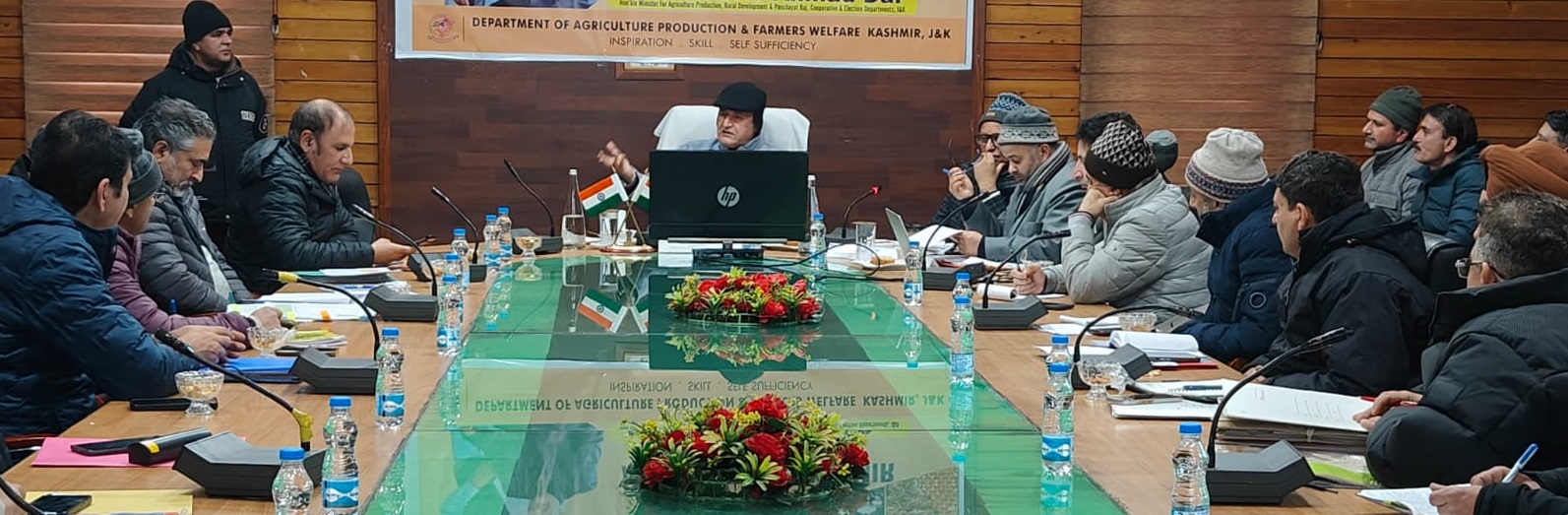 He stated this while chairing a meeting with Director Agriculture Kashmir, Joint Directors, Provincial Heads, Scheme Heads, Sectoral Officers and Chief Agriculture Officers from various districts at the Agriculture Complex, Lalmandi, Srinagar.