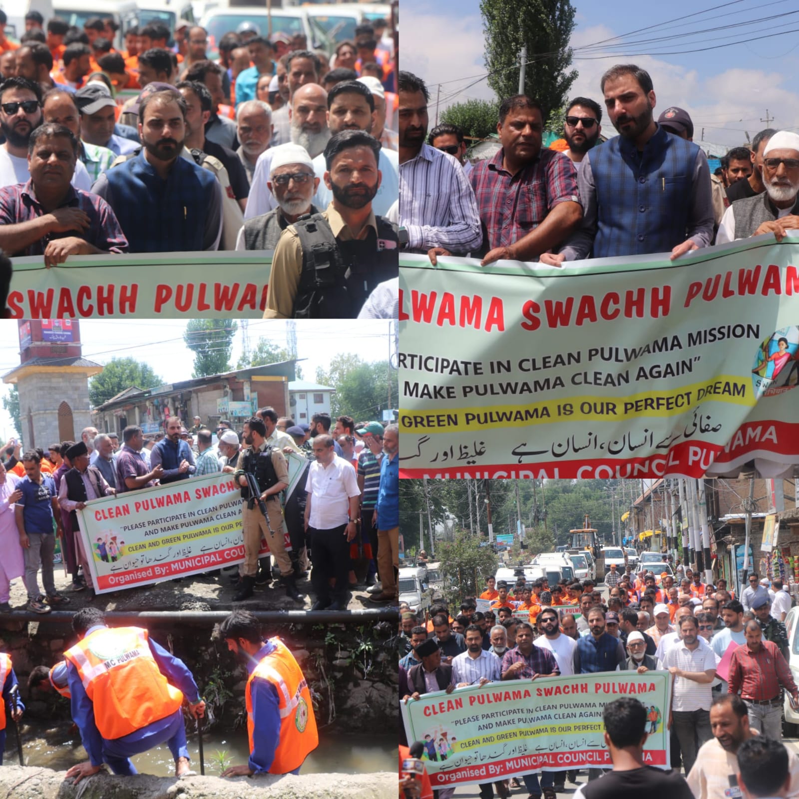 In this regard, a walkathon under Swachh Bharat Abhiyan lead by DC was started from DC Office and culminated at Shaheed Farooq Chowk Pulwama in which officers/Officials from Civil departments, PRI members from Pulwama, traders, members from Pulwama Chamber of Commerce, Volunteers, Civil Society members, Students, Municipal Council members of Pulwama, besides local youth participated.