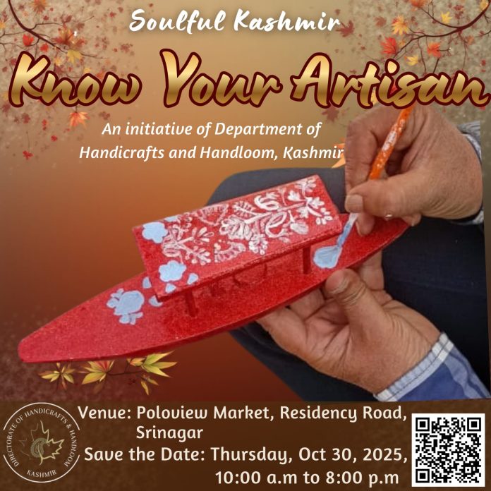 SRINAGAR: Riding high on the success of the first two editions of ‘Know Your Artisan’ series held at Jhelum Riverfront and Ghanta Ghar, the Department of Handicrafts & Handloom, Kashmir, is organizing the third leg of its ‘Soulful Kashmir’ campaign at the historic Polo View Market, here on Thursday.
