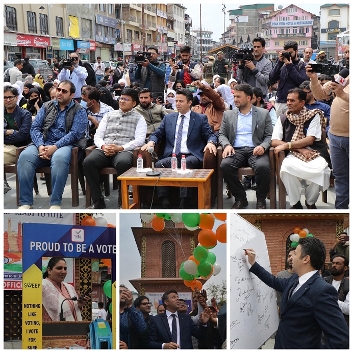 District Election Officer (DEO) Srinagar, Dr. Bilal Mohi-Ud-Din Bhat, who is also the Returning Officer (RO) for 02-Srinagar Parliamentary Constituency joined the vibrant Voter Awareness programme organised by District Election Authority at the historic Ghanta Ghar under Systematic Voters’ Education and Electoral Participation (SVEEP).