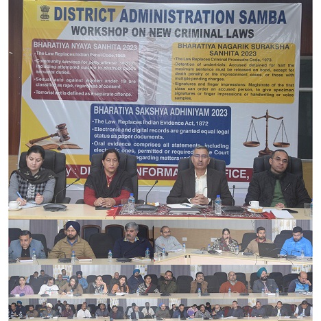 SAMBA: The District Administration Samba, under the chairmanship of Deputy Commissioner Rajesh Sharma, today organised an awareness seminar and interaction event on the newly introduced criminal laws in the Conference Hall, DC Office Complex, Nandani Hills.