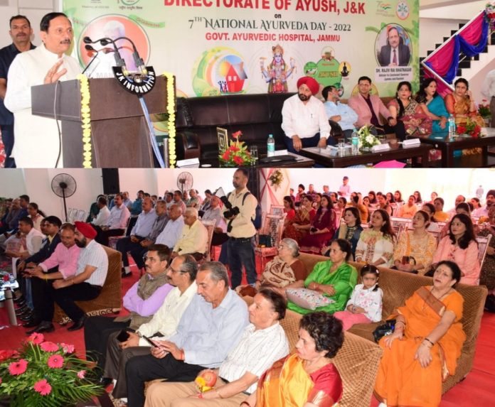 Director Ayush J&K, Dr. Mohan Singh; Medical Superintendent Govt. Ayurvedic Hospital, Medical officers, paramedical staff, students, Ayurvedic organizations and representatives of Regional Research Institute of Ayurveda also participated in the program.