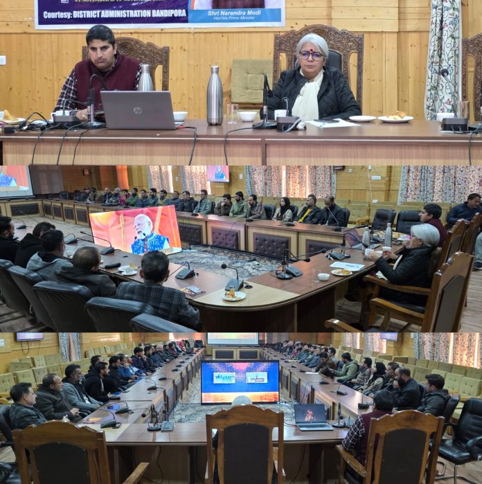 The main district-level event was organised at the Mini Secretariat Bandipora, where Deputy Commissioner Bandipora, Indu Kanwal Chib, along with District Programme Officer ICDS Bandipora, Yaar Ali Khan; Assistant Commissioner Development Bandipora and officers from various line departments, and other officials joined the live streaming of Hon’ble Prime Minister Narendra Modi’s address.