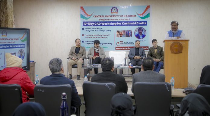 GANDERBAL: With an aim to blend tradition with technology, the Design Innovation Centre (DIC), Central University of Kashmir (CUKashmir), Wednesday started a 10-day workshop on “Computer-Aided Design (CAD) for Kashmiri Crafts,” for artisans at Tulmulla Campus here.