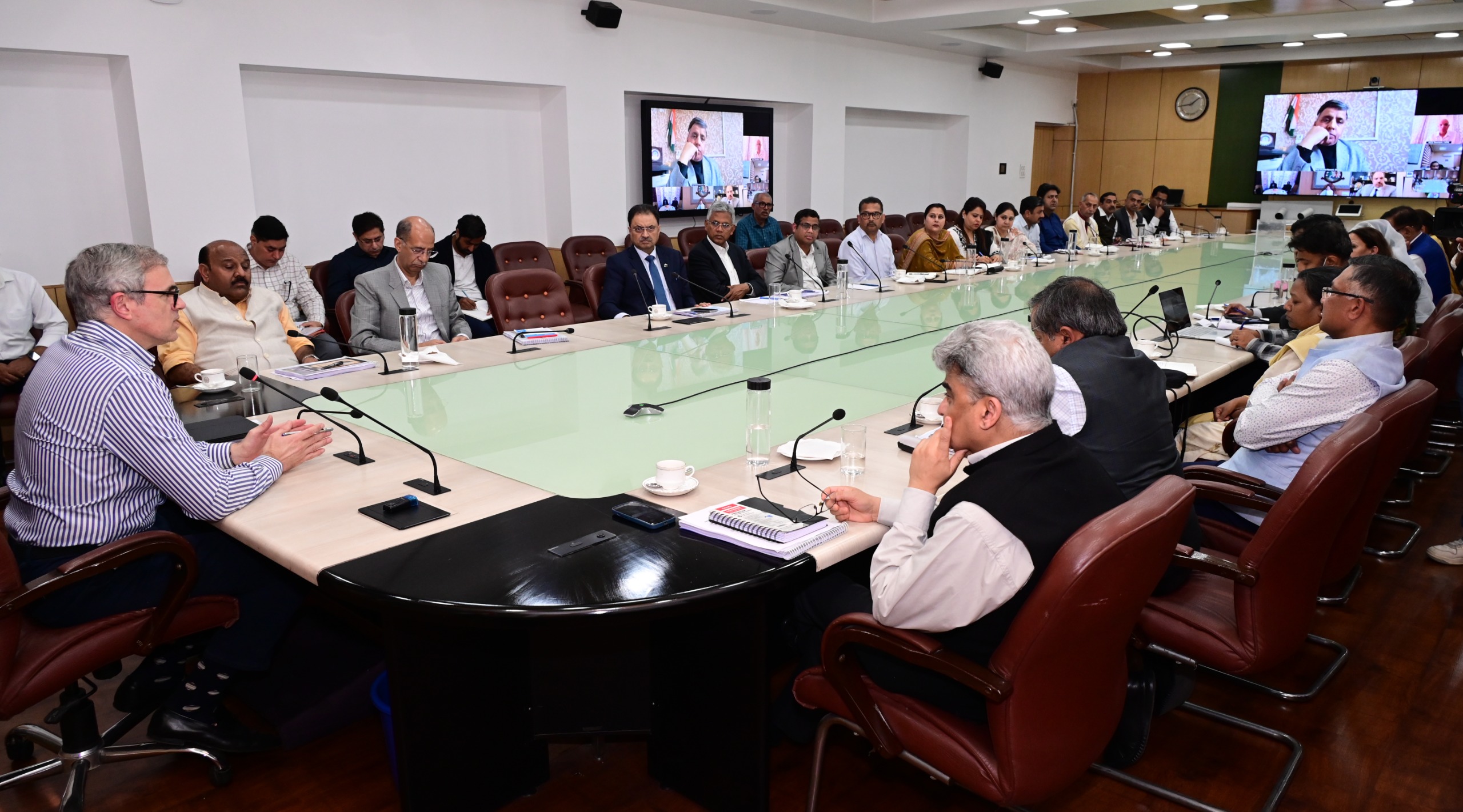 The meeting was attended by Deputy Chief Minister Surinder Kumar Choudhary, Advisor to the Chief Minister Nasir Aslam Wani, Chief Secretary Atal Dulloo, Additional Chief Secretary to the Chief Minister Dheeraj Gupta, Additional Chief Secretary Finance Shailendra Kumar, Additional Chief Secretary Tourism & PDD, Commissioner Secretary Planning, Development & Monitoring, Commissioner Secretary Industries & Commerce, Secretary Labour & Employment, Managing Director and CEO Jammu and Kashmir Bank, Vice Chancellors of all universities of Jammu and Kashmir, Directors of Indian Institute of Management and Indian Institute of Technology, senior professors and other concerned officials.