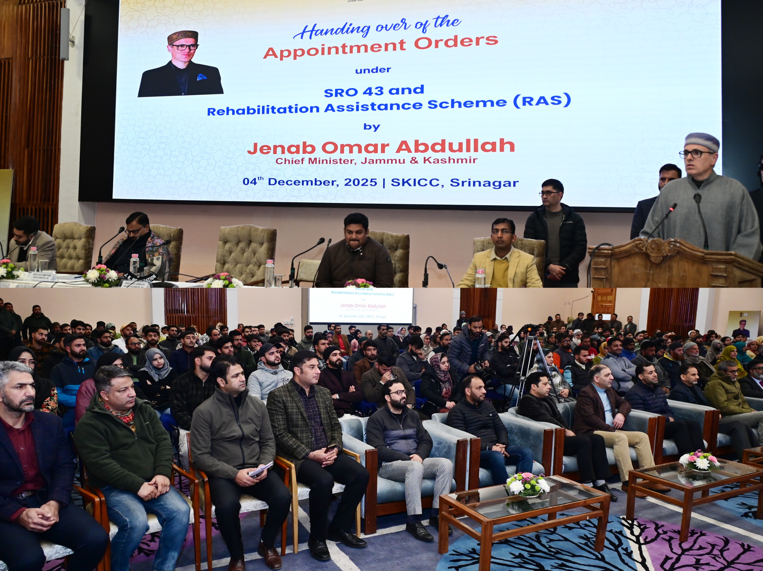 SRINAGAR: A day after distributing compassionate appointment orders in Jammu, Chief Minister Omar Abdullah today handed over SRO-43 and RAS-2022 appointment orders to beneficiaries at the Sher-i-Kashmir International Convention Centre (SKICC), Srinagar, reaffirming the Government’s commitment to provide support to the bereaved families.