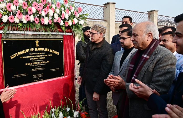 PAMPORE: Chief Minister Omar Abdullah today laid the foundation stone for the Automated Testing Station at Pampore, marking a significant step toward enhancing road safety and strengthening the transport infrastructure in Jammu and Kashmir.
