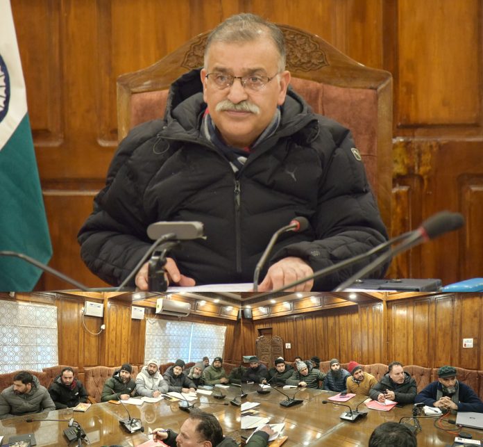 BANDIPORA: Deputy Commissioner Bandipora, Manzoor Ahmad Qadri, today chaired a meeting to review and assess the ongoing efforts in snow clearance and the restoration of essential services across the district, following the recent snowfall.