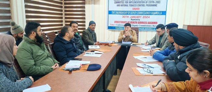 BARAMULLA: The Deputy Commissioner (DC) Baramulla, Minga Sherpa today chaired a review meeting of District Level Coordination Committee (DLCC) for implementation of COTPA-2003 (Cigarettes and other Tobacco Products Act-2003) and National Tobacco Control Programme (NTCP) in District Baramulla.