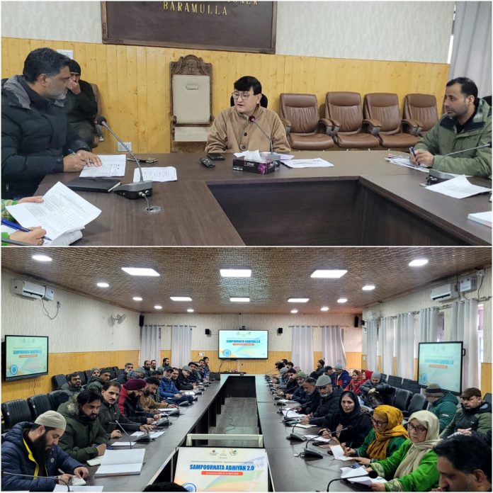 BARAMULLA: In view of the launch of Sampoornata Abhiyan 2.0, Deputy Commissioner Baramulla, Minga Sherpa today chaired a review meeting at the main meeting hall of DC office Baramulla to assess preparedness and ensure saturation of key performance indicators (KPIs) under the Aspirational District Programme (ADP) and Aspirational Block Programme (ABP).