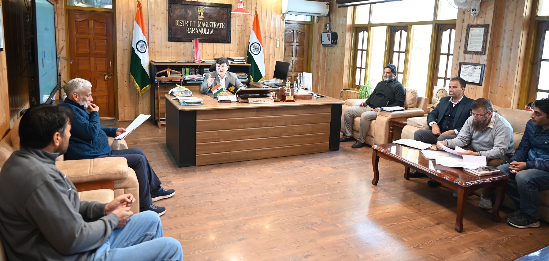 BARAMULLA: Deputy Commissioner Baramulla, Minga Sherpa today chaired a meeting in his office chamber to review the implementation of the PM Surya Ghar Scheme (Muft Bijli Yojna) in the district. The meeting was attended by concerned officers from the Power Development Department and other line departments.