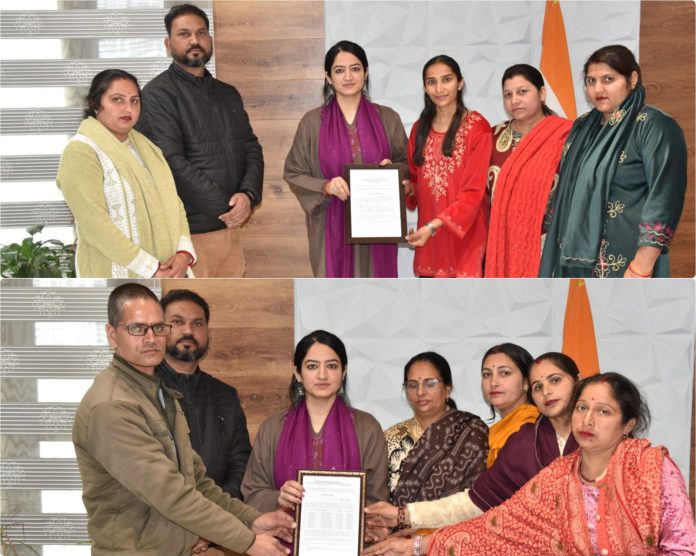 UDHAMPUR: Deputy Commissioner Udhampur Saloni Rai today handed over sanction orders to beneficiaries under the Karkhandar scheme in the presence of Assistant Director, Handicrafts and Handloom Department Udhampur, Joginder Mangol.