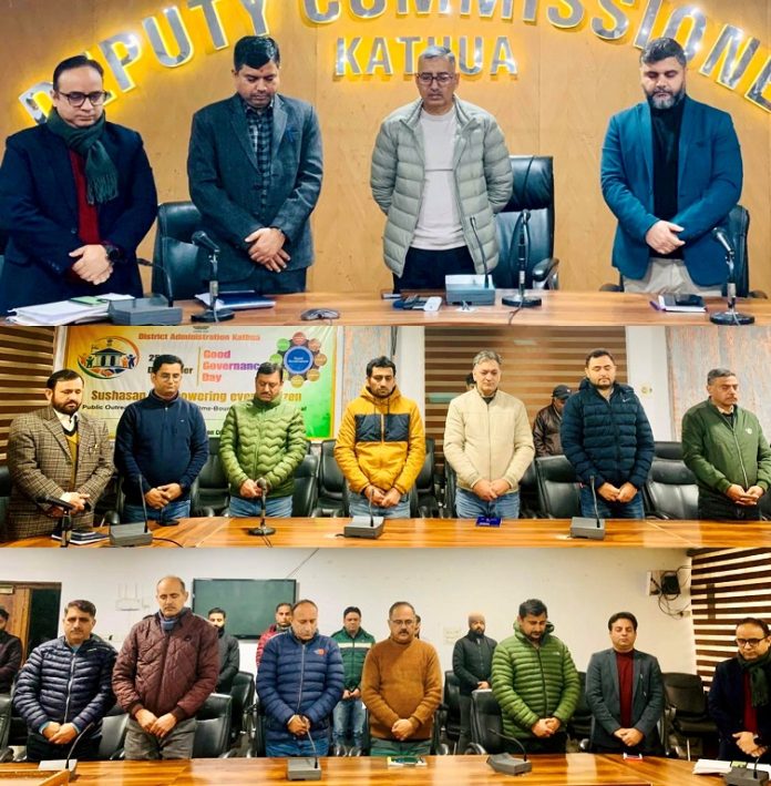 KATHUA: A condolence meeting was held today at the DC Office Complex Kathua under the chairmanship of Deputy Commissioner Rajesh Sharma to mourn the sudden demise of Deputy District Election Officer (Dy DEO) Samba Sunil Angral.