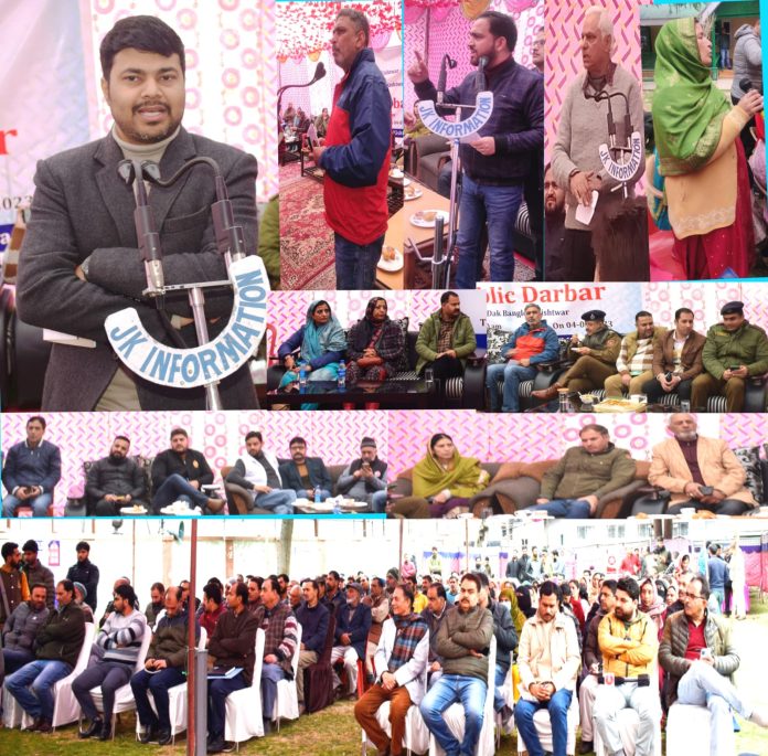 Additional Deputy Commissioner, Kishori Lal Sharma; ASP Rajinder Singh; GM DIC Mohammad Ashraf; DSWO, Zubair Ahmed; Tehsildar, Muneeb Umar; EO Municipal Council, Ninad Sen; CDPO Ifat Ara; CHO Sajid Mustafa, besides several other officers also attended the public darbar.