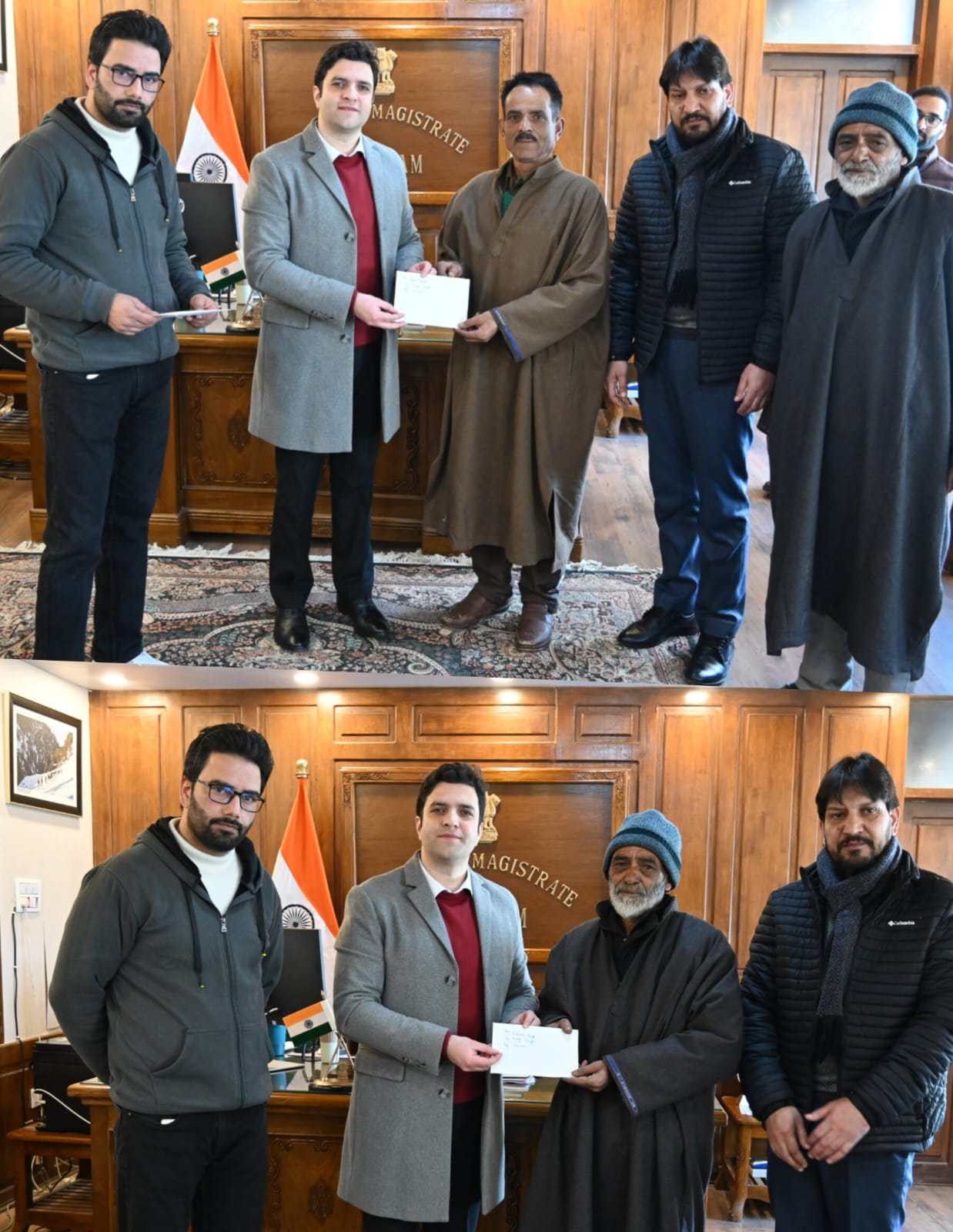 KULGAM: Deputy Commissioner Kulgam, Athar Aamir Khan, handed over an immediate SDRF relief cheque to Ashok Singh and Ishwar Singh, residents of village Laisoo, Kulgam, whose house was severely damaged in a fire incident during the intervening night of January 22–23, 2026.