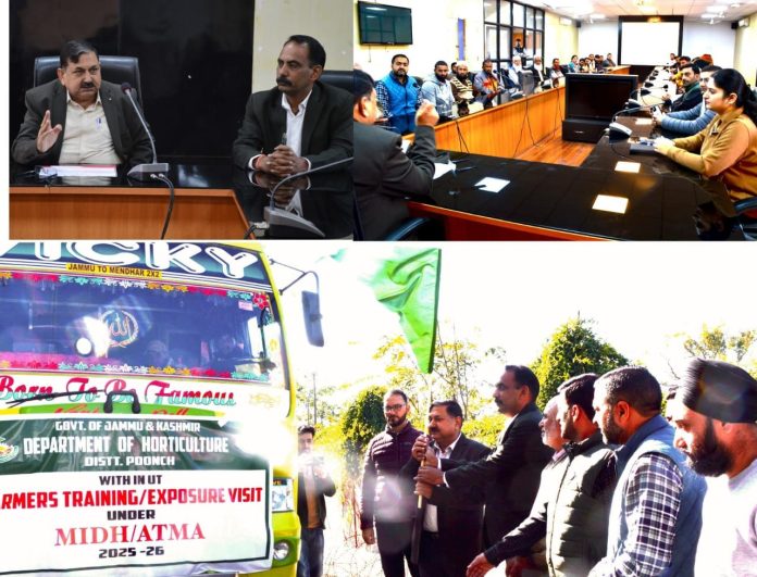 A total of 40 progressive farmers from different horticulture zones and blocks of District Poonch have been deputed for this training-cum-exposure visit. The group will visit Sher-e-Kashmir University of Agricultural Sciences and Technology (SKUAST)-Kashmir, the Central Institute of Temperate Horticulture (CITH) and other leading research stations, nurseries and Centres of Excellence across the Union Territory.