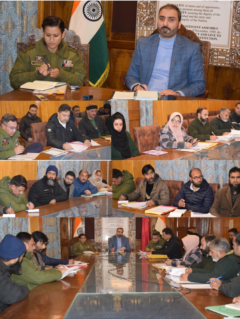The meeting was attended by SSP Pulwama, Tanushree; SSP Awantipora, Sajad Ahmad Bhat; Assistant Commissioner Revenue Pulwama; and officers from Police, Health, Education and other sectoral departments.