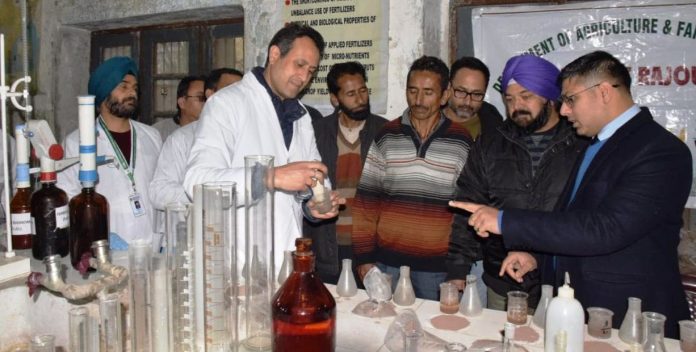 The Deputy Commissioner was briefed about the various processes involved in soil testing, including sample collection, preparation, and analysis by Chief Agriculture Officer Rajouri, Sohan Singh.