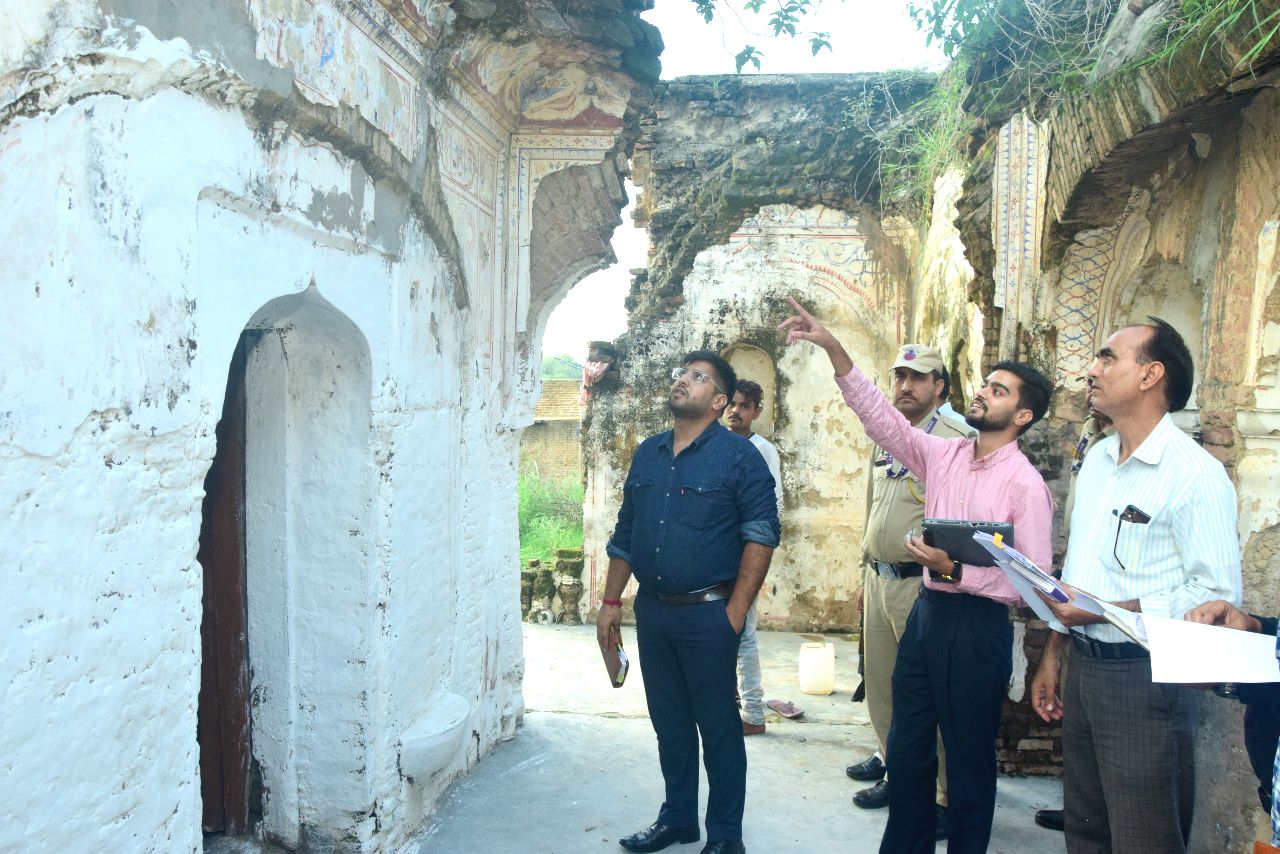 SAMBA: District Development Commissioner (DC) Samba, Abhishiek Sharma today visited the Bhamu Chack Temple to oversee the ongoing restoration work being carried out by the Archives Department in collaboration with the Public Works Department (PWD).