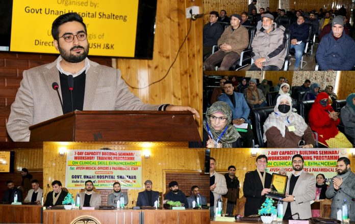 SRINAGAR:– Deputy Commissioner (DC) Srinagar, Akshay Labroo on Monday inaugurated a seven-day Capacity Building Training Programme on Clinical Skill Enhancement for AYUSH Doctors, Paramedical Staff and Data Operators of the Kashmir division under National Ayush Mission at the Auditorium of Government Unani Hospital, Shalteng.