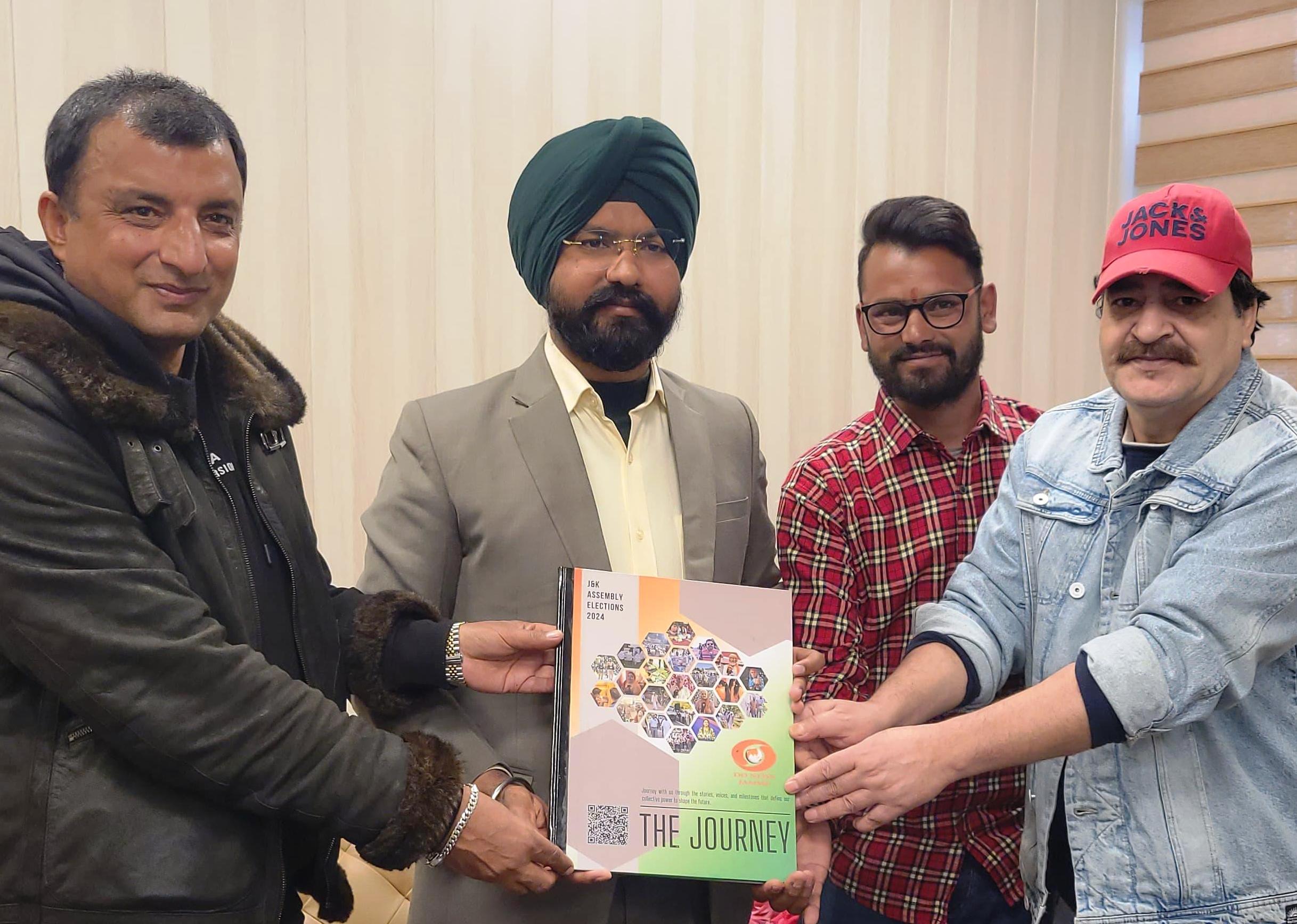 DODA: The Doordarshan(DD) Jammu team today presented a Coffee Table Book to District Election Officer Harvinder Singh at the Deputy Commissioner’s Office in Doda.