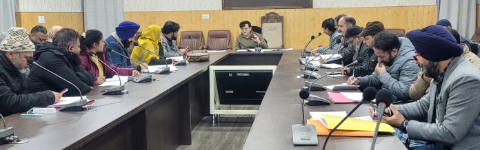 BARAMULLA: District Development Commissioner (DDC) Baramulla, Minga Sherpa today chaired a meeting at the Main Meeting Hall DC Office to review the Baseline Survey and finalise the Comprehensive District Agriculture Development Plan (DADP) under the Pradhan Mantri Dhan Dhanya Krishi Yojana (PMDDKY).