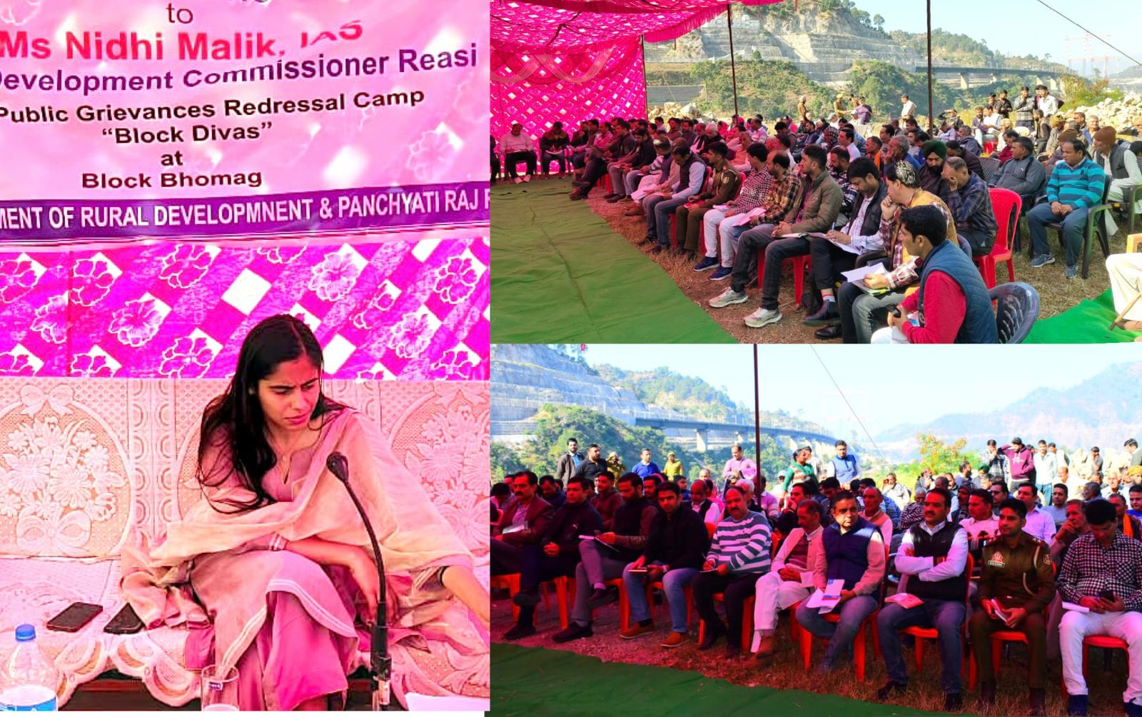 REASI: District Development Commissioner (DDC) Reasi, Nidhi Malik, today conducted a Public Grievances Redressal Camp at Dhol Devta Mandir, Bakal in Block Bhomag to take firsthand account of public issues and ensure timely resolution of grievances raised by residents of the area.