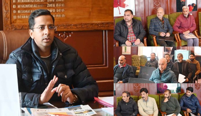 SHOPIAN: District Development Commissioner (DDC) Shopian, Shishir Gupta today chaired an important review meeting to assess the progress of multiple flagship schemes, including HADP, JKCIP, KCC,KKG and PMFBY at the Mini-Secretariat, Shopian.