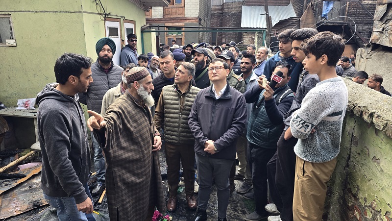 BARAMULLA: Deputy Inspector General (DIG) of North Kashmir, Maqsood-ul-Zamaan, along with Deputy Commissioner (DC) Baramulla, Minga Sherpa, and Senior Superintendent of Police (SSP) Baramulla, Gurinderpal Singh, visited Mohalla Jala Sahib in Old Town Baramulla to assess the devastation caused by a massive fire.