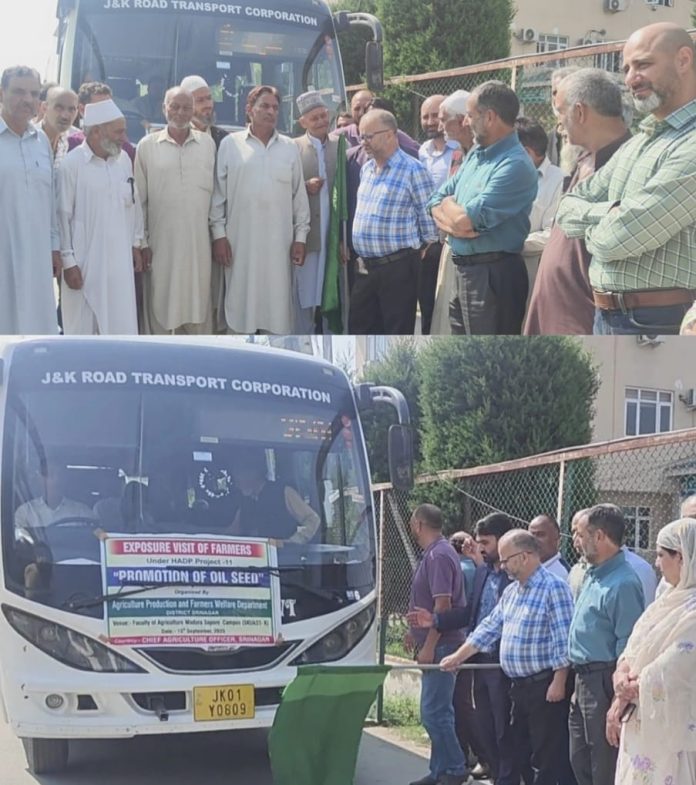 SRINAGAR: A group of 45 progressive farmers from different zones of Srinagar district was today flagged-off by Director Agriculture Kashmir, Sartaj Ahmad Shah for an exposure visit to Faculty of Agriculture Wadura Sopore campus (SKUAST-K).