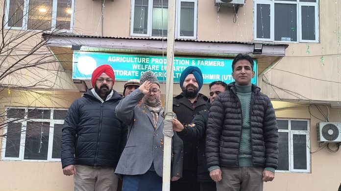 SRINAGAR: In a vibrant display of national pride and unity, the Directorate of Agriculture Kashmir marked the 77th Republic Day with a solemn flag-hoisting ceremony at its headquarters in Lal Mandi, Srinagar.