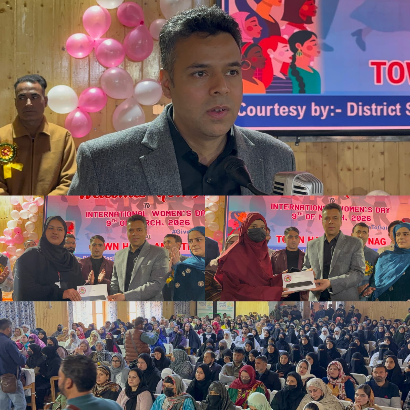 He said it is the responsibility of administration, institutions and public offices to provide a supportive ecosystem to the women. He made these remarks while speaking as Chief Guest on occasion of the International Women’s Day-2026 (IWD) celebratory function, which was organised by District Administration in collaboration with Social Welfare, ICDS and other departments at Town Hall, Anantnag.