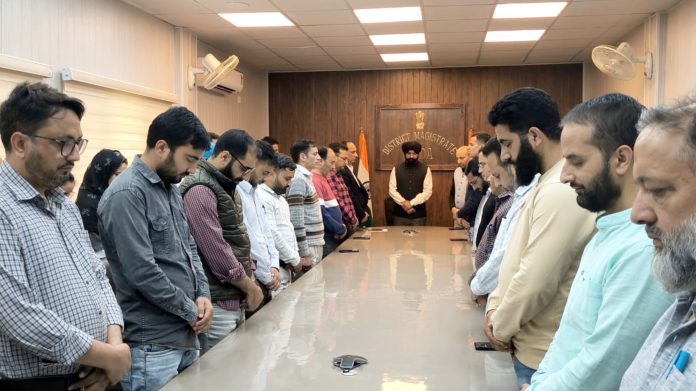 DODA: The District Administration Doda, under the leadership of Deputy Commissioner Doda, Harvinder Singh, observed a two-minute silence today in solemn remembrance of the victims of the heinous massacre that took place in Pahalgam, Kashmir.