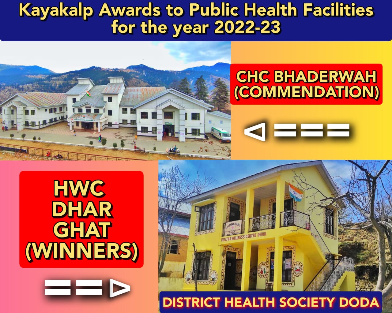 Community Health Centre (CHC) Bhaderwah received a commendation award and Health and Wellness Centre (HWC) Dhar was named a winner under the Kayakalp Programme of the National Health Mission.