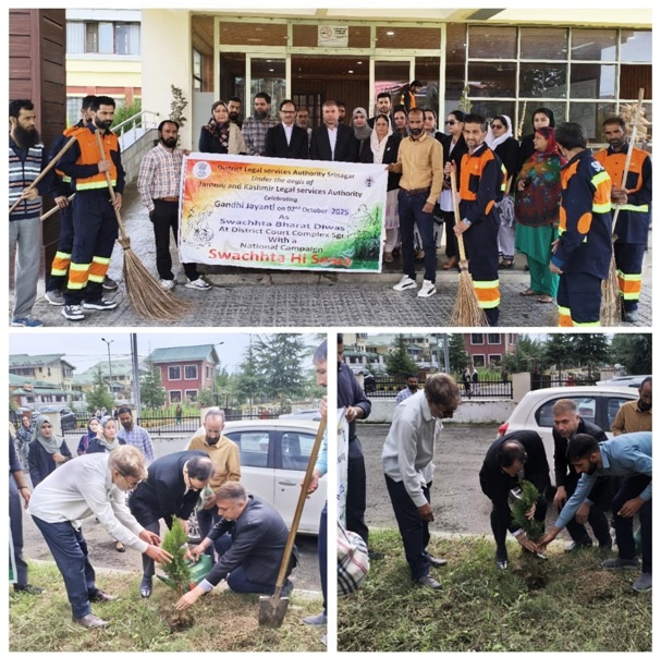 SRINAGAR: District Judiciary Srinagar, in collaboration with the District Legal Services Authority (DLSA) Srinagar, today organized a special cleanliness drive within the premises of the District Court Srinagar under the banner of the nationwide campaign “Swachhata Hi Seva”.