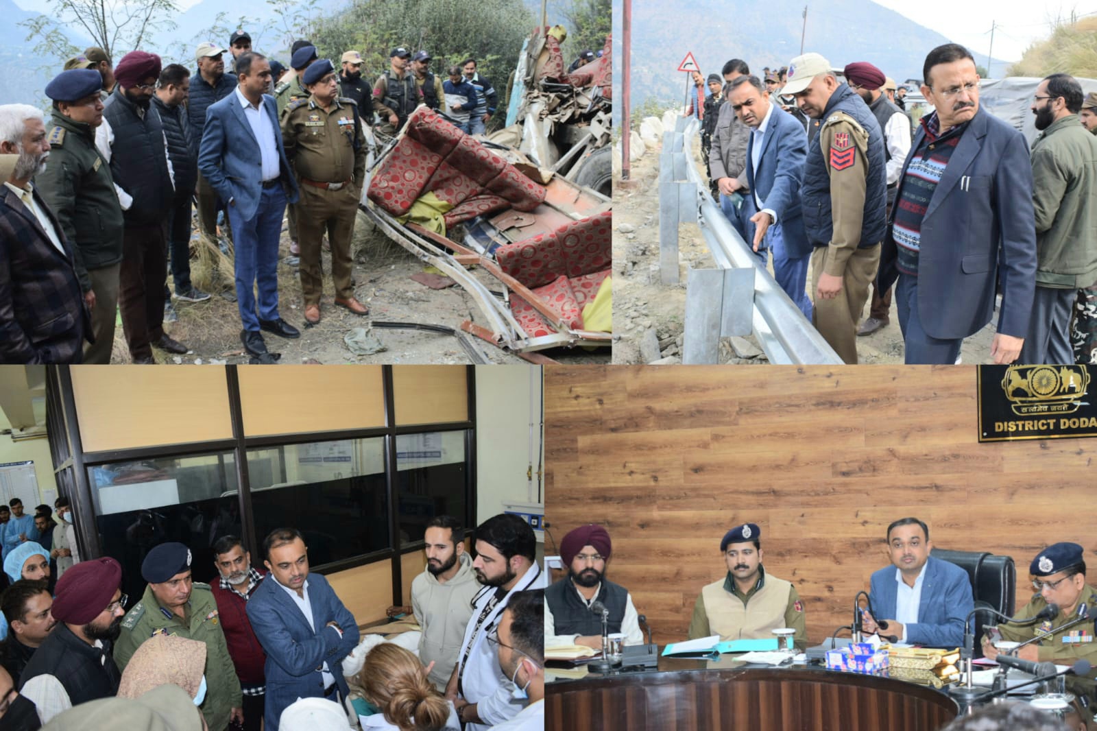 Accompanied by Deputy Commissioner Doda Harvinder Singh, DIG DKR Dr Sunil Gupta, DIG Traffic Jammu, Sridhar Patil, Transport Commissioner Jammu, Chief Engineer PWD, SSP Doda, SSP Traffic, Executive Engineers and other officials, the Div com conducted thorough assessment and discussed immediate safety measures to prevent such mishaps in the future.
