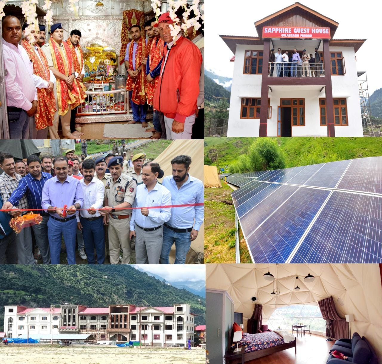 KISHTWAR: Marking a major move to facilitate Shri Machail Mata Yatra pilgrims, Divisional Commissioner Jammu, Ramesh Kumar along with Deputy Commissioner Kishtwar, Dr. Devansh Yadav and SSP Kishtwar, Khalil Ahmed Poswal on Friday visited Machail and inaugurated first of its kind 30 KW hybrid solar power plant – a guest House and three Mushroom Model Tents at Gulabgarh for providing accommodation to devotees during the Yatra.