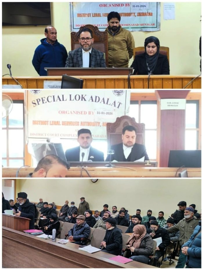 SRINAGAR: District Legal Services Authority (DLSA) Srinagar, organized a Special Lok Adalat for Criminal Compoundable Cases at the District Court Complex, Mominabad, Srinagar.