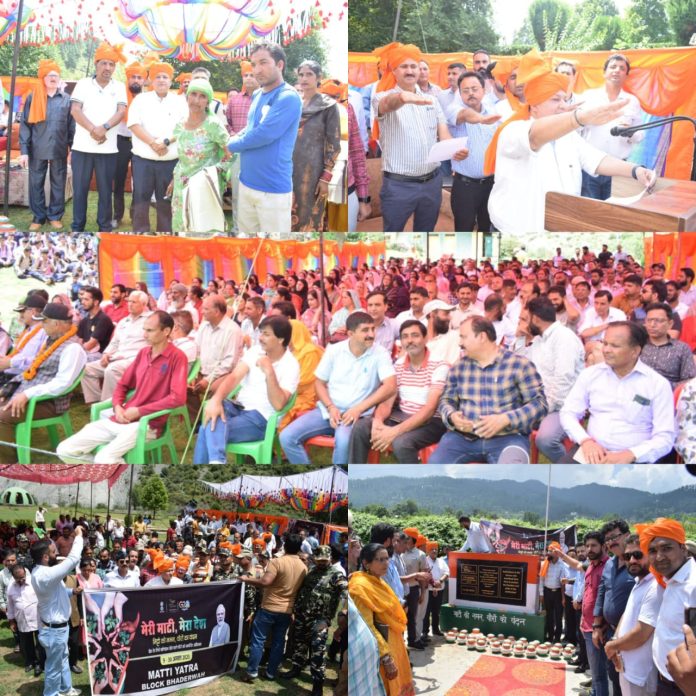 Meanwhile, the families of Martyrs and Ex Servicemen were felicitated in Gatha Park Bhaderwah to mark the launch of ‘Meri Maati Mera Desh’ campaign.