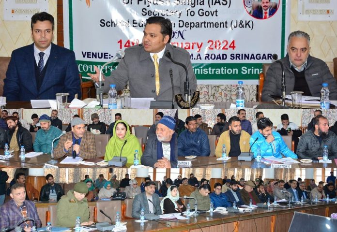 SRINAGAR: Secretary School Education, Dr. Piyush Singla presided over a mega Public Darbar at Banquet Hall in Srinagar today, taking stock of the issues and demands of the people.