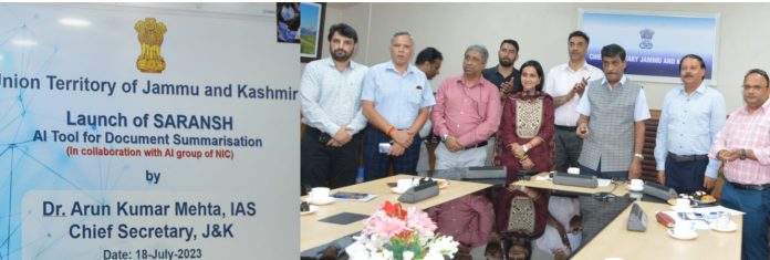 SRINAGAR: Chief Secretary, Dr Arun Kumar Mehta today launched ‘JK Saransh’, a first of its kind Artificial Intelligence (AI) tool for document summarization developed by the Information Technology Department of the UT.