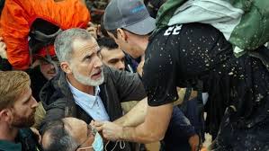 Government officials accompanied the monarch who tried to talk to locals while others shouted at him in Paiporta, an outskirt of Valencia city that has been devastated.
