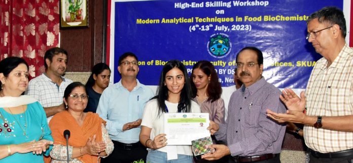 JAMMU, JULY 14: Ten day High End Skilling Workshop on Modern Analytical Techniques in Food Biochemistry sponsored under Vigyan Accelerate Karyashala Scheme of DST-SERB organized from 4th to 13th July, 2023 concluded at Division of Biochemistry, Faculty of Basic Sciences SKUAST-Jammu.