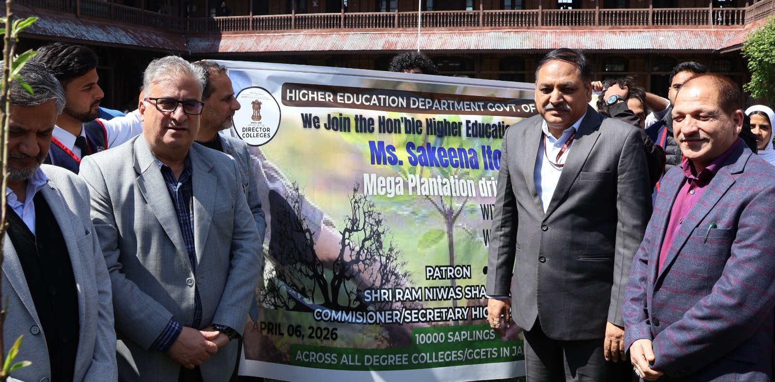 As part of the drive, Special Secretary, Higher Education, Shafqat Iqbal and Director Colleges, Dr. Sheikh Aijaz Bashir planted the saplings at Government Degree College Bemina and Government Degree College Women, M.A Road Srinagar.